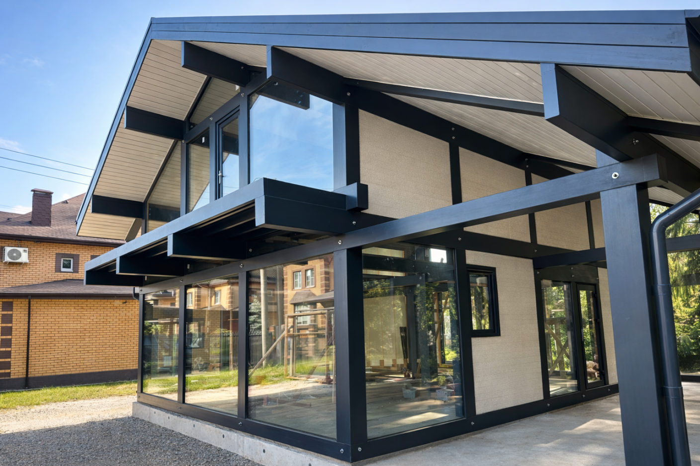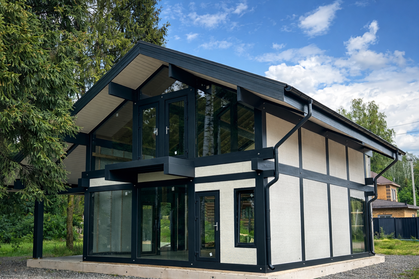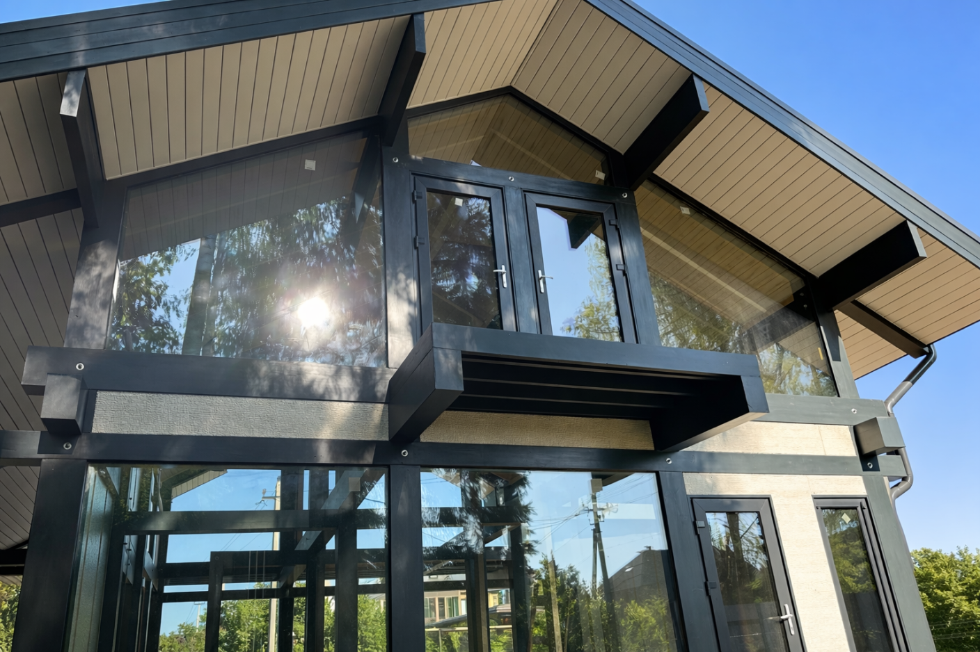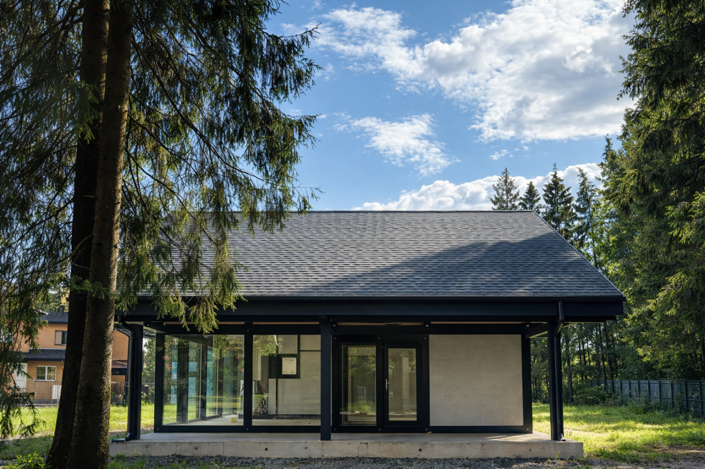 Дом перестал быть статичным объёмом. Он словно раскрывается, реагирует на окружение, вступает в диалог с ландшафтом.