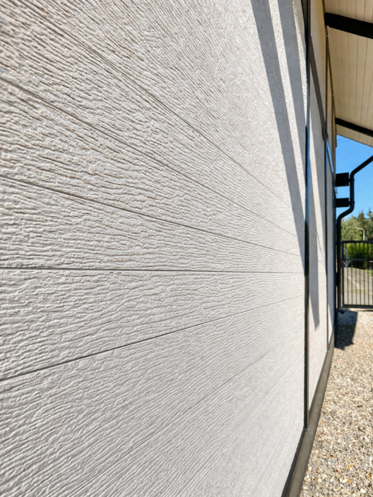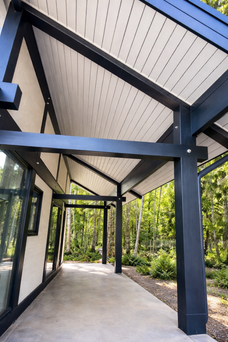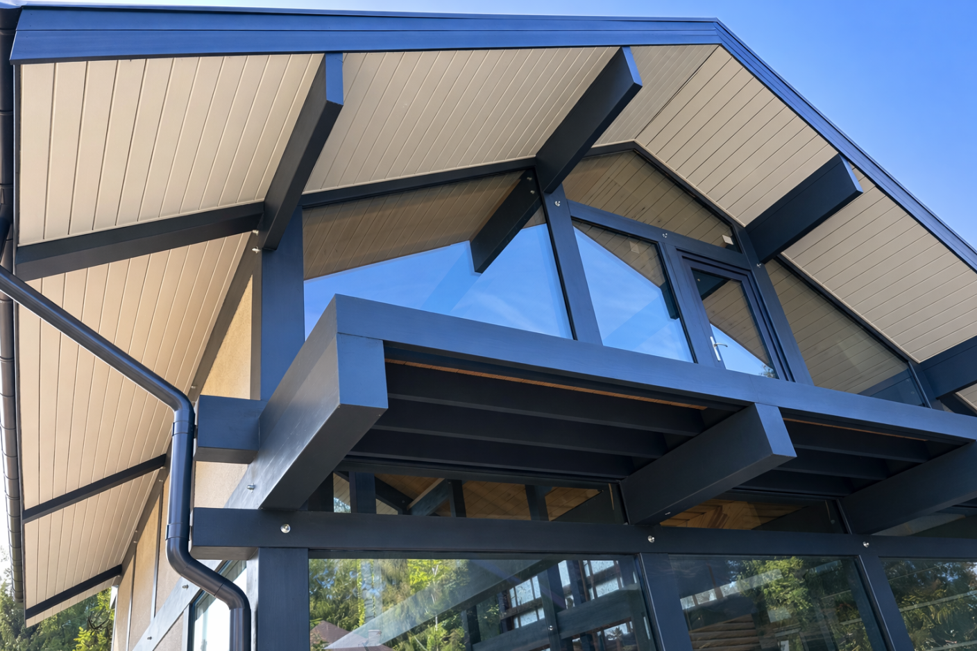 За счёт разворота кровли мы избавились от привычных желобов по периметру крыши.