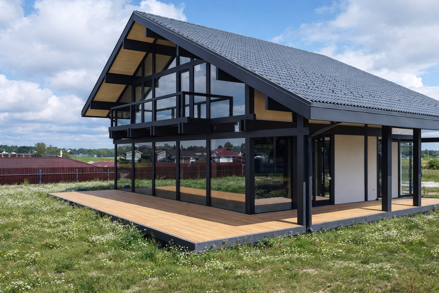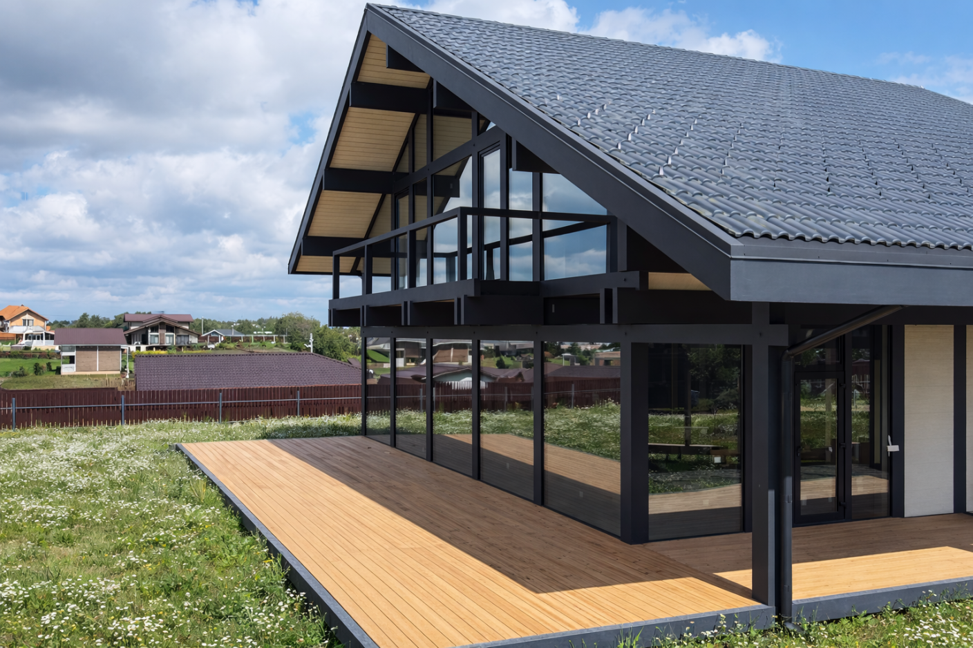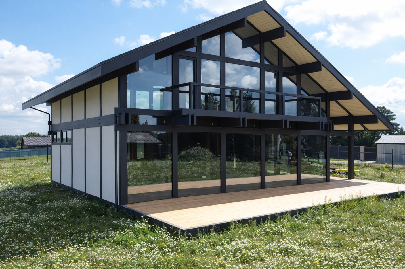 Дом перестал быть статичным объёмом. Он словно раскрывается, реагирует на окружение, вступает в диалог с ландшафтом.