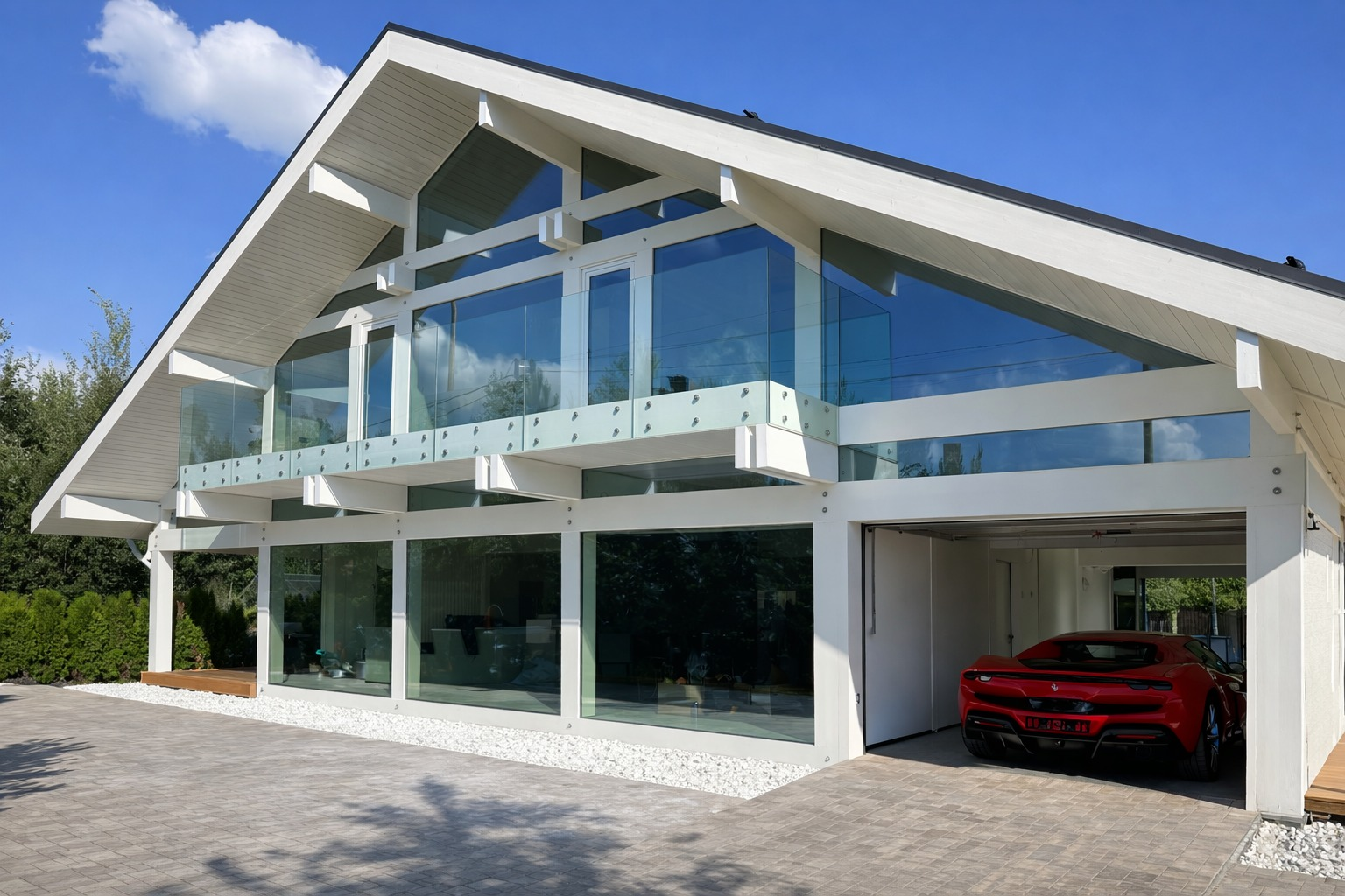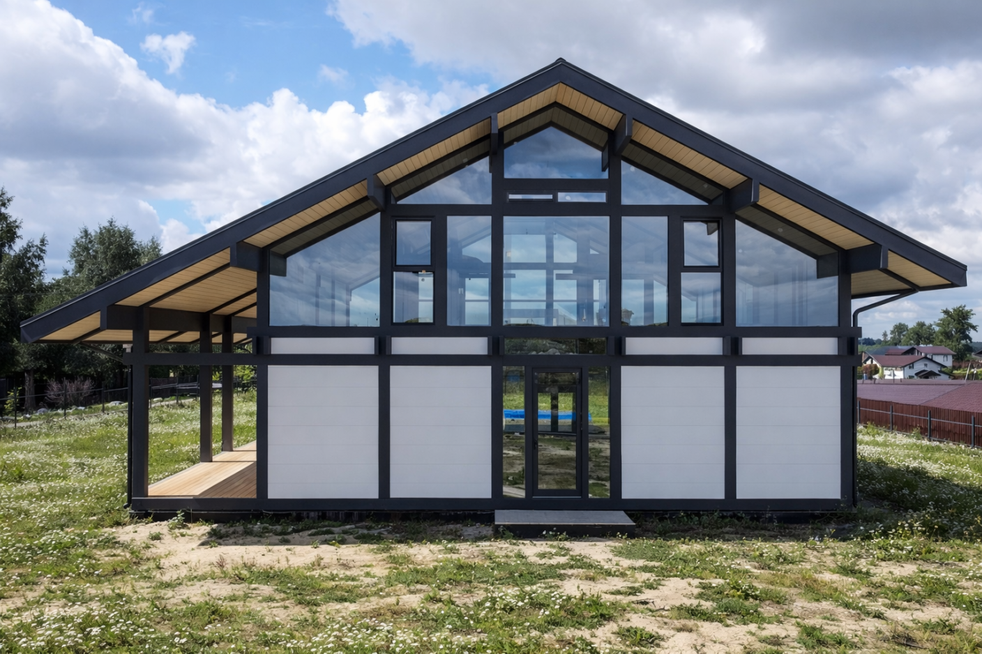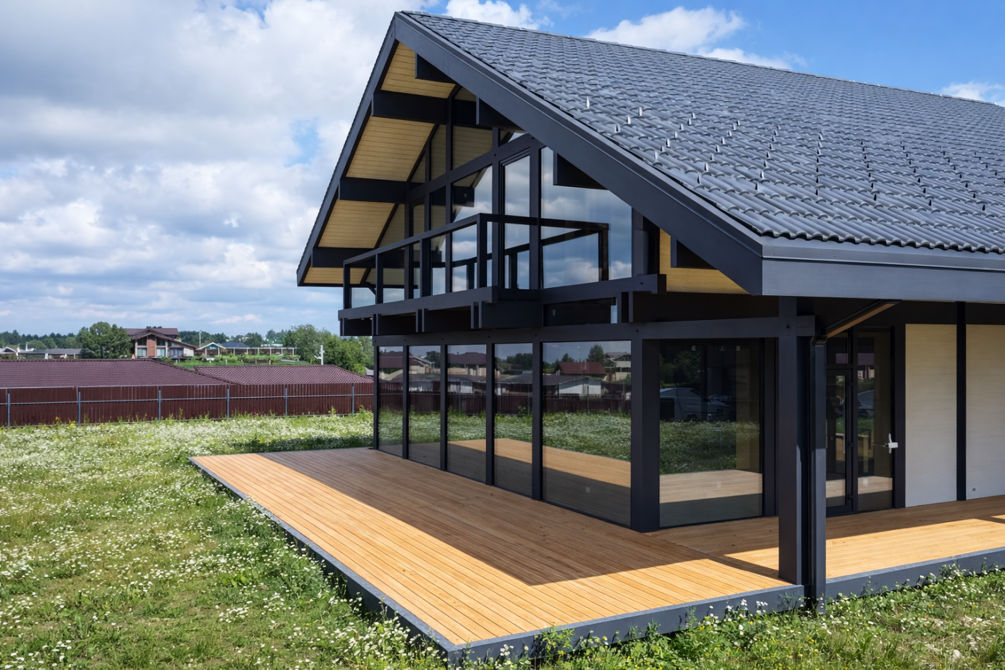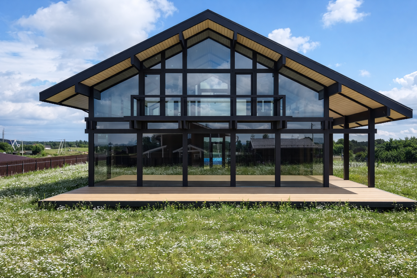 Дом перестал быть статичным объёмом. Он словно раскрывается, реагирует на окружение, вступает в диалог с ландшафтом.