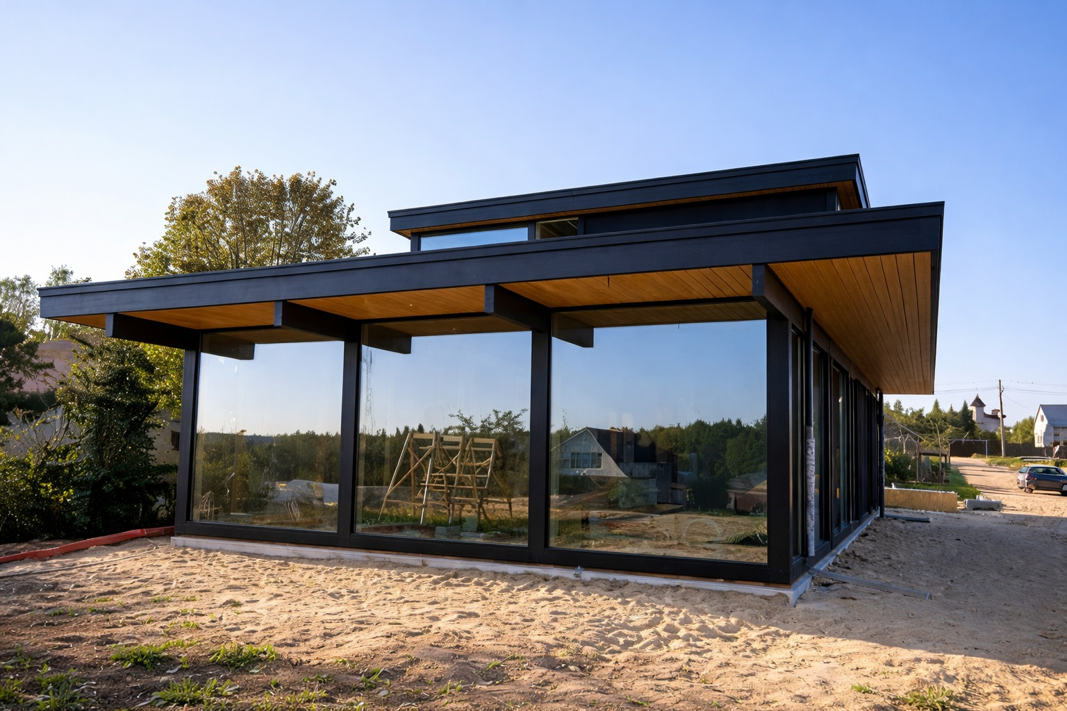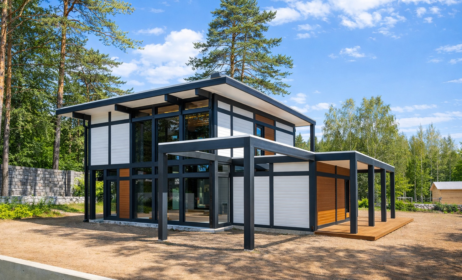 Дом перестал быть статичным объёмом. Он словно раскрывается, реагирует на окружение, вступает в диалог с ландшафтом.