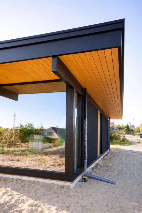 За счёт разворота кровли мы избавились от привычных желобов по периметру крыши.