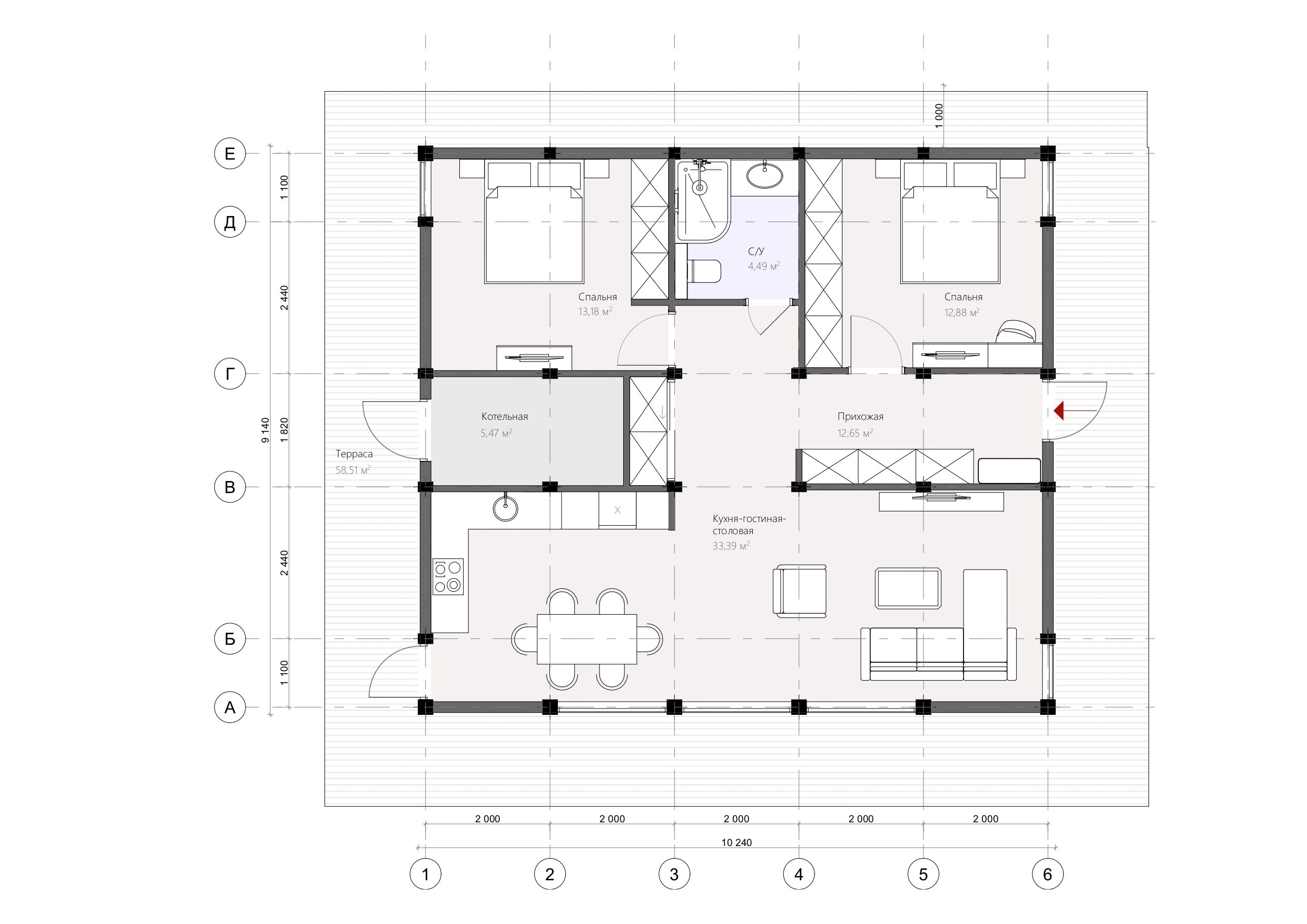 Дом с двумя спальнями и просторной кухней-гостиной идеально сочетает в себе функциональность и уют, обеспечивая комфортное проживание для семьи. Современный дизайн и хорошая организация пространства делают его пригодным для повседневной жизни и встреч с гостями.