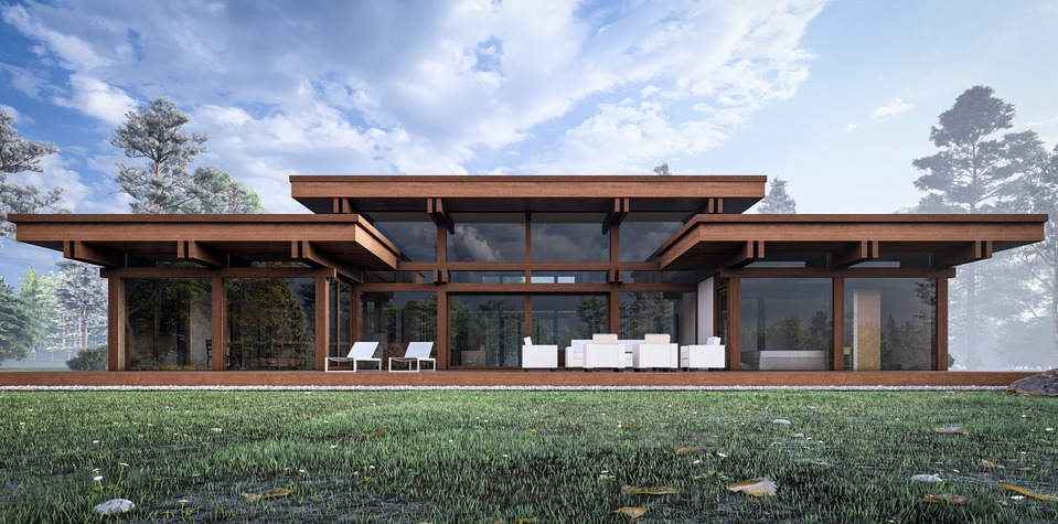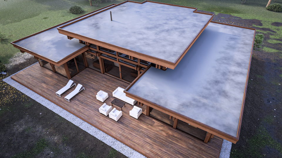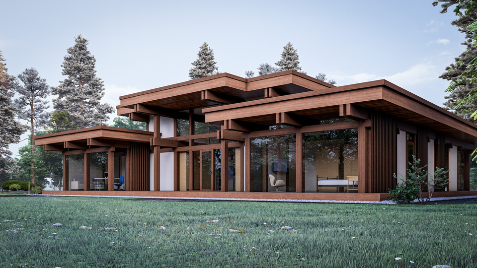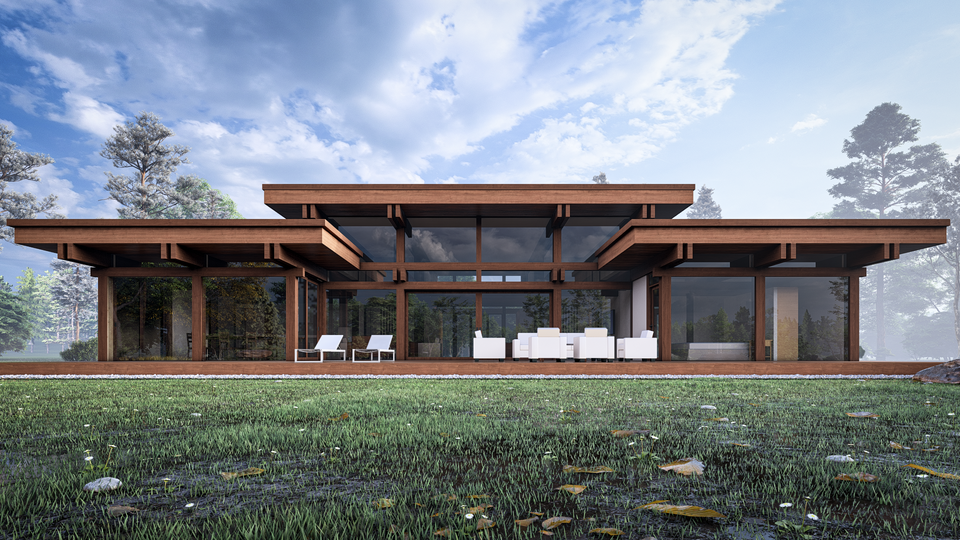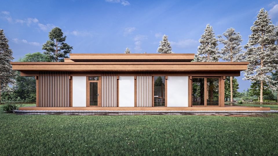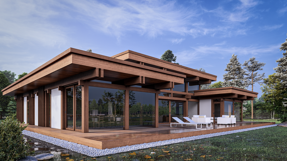 Комфортный одноэтажный дом с разноуровневой крышей