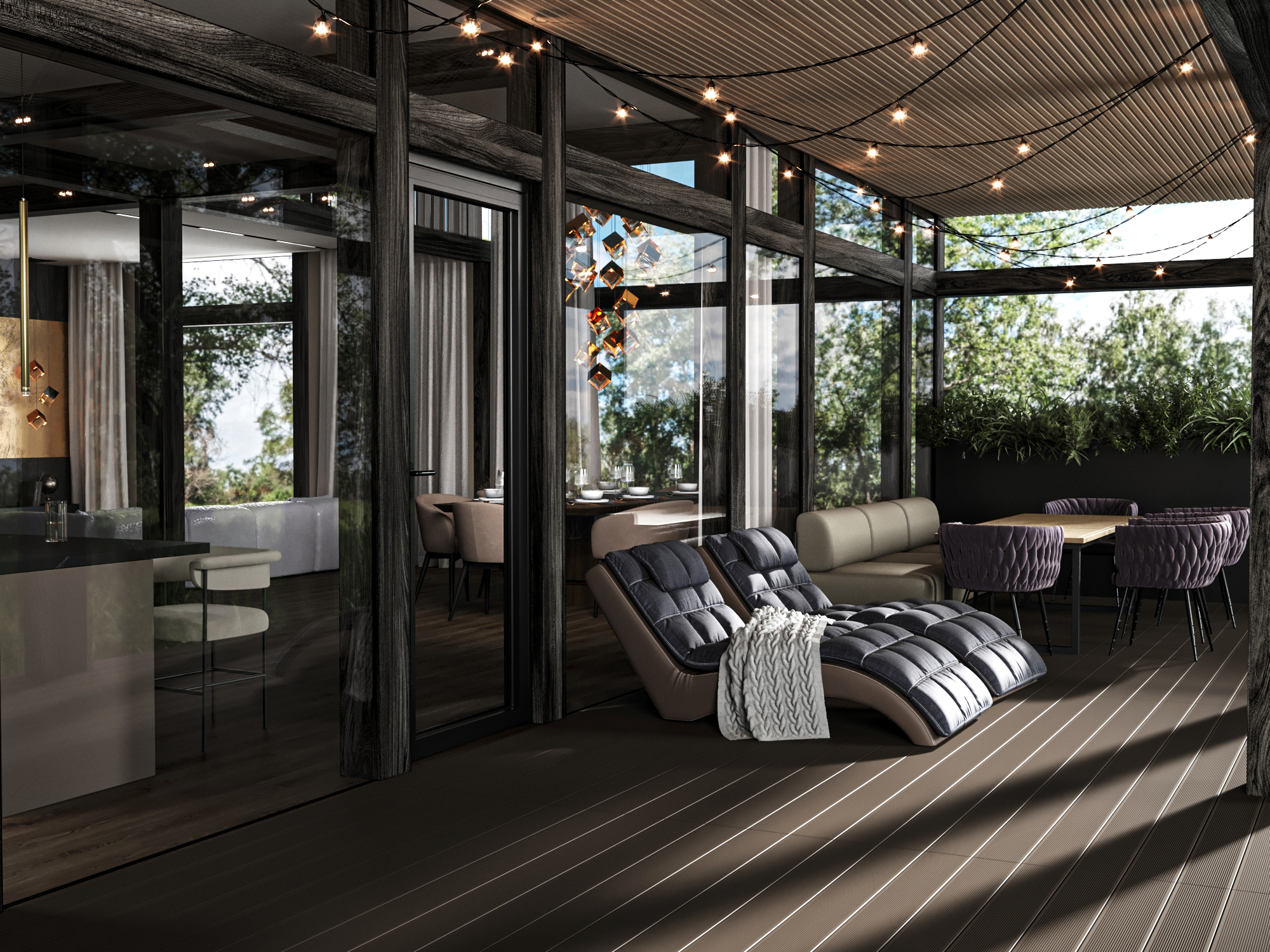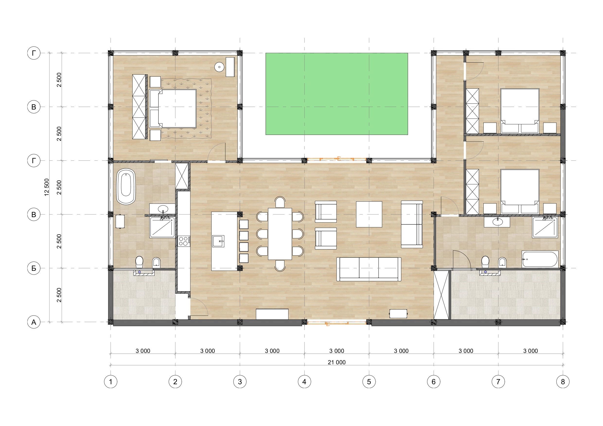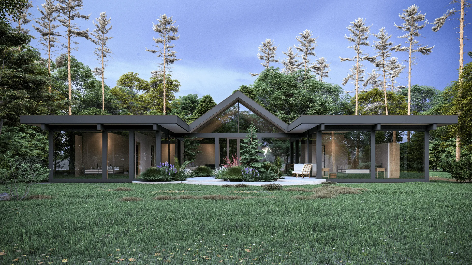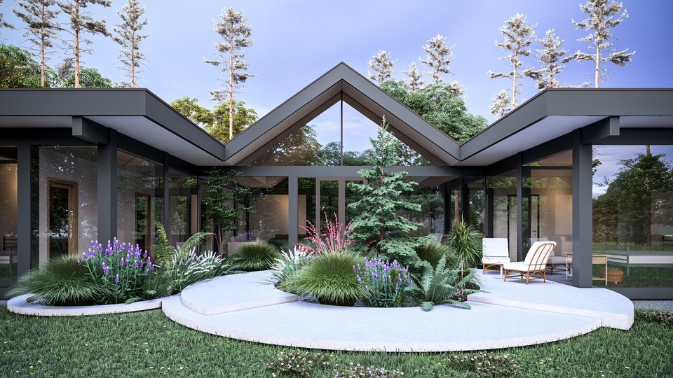 Этот одноэтажный дом названный в честь американского дивелопера Джозефа Эйхлера , с тремя спальнями, просторной кухней-гостинной и садом в центре дома. Сад с любимыми растениями будет видно с гостиной, спальни и галерей.