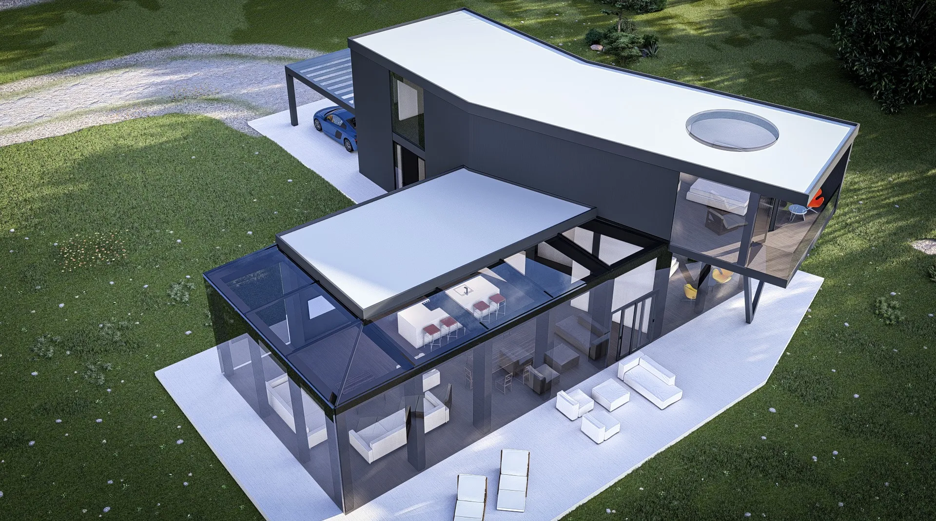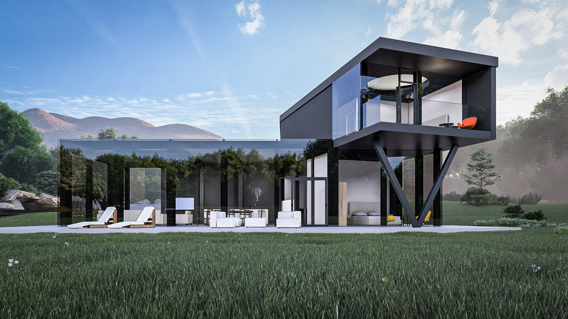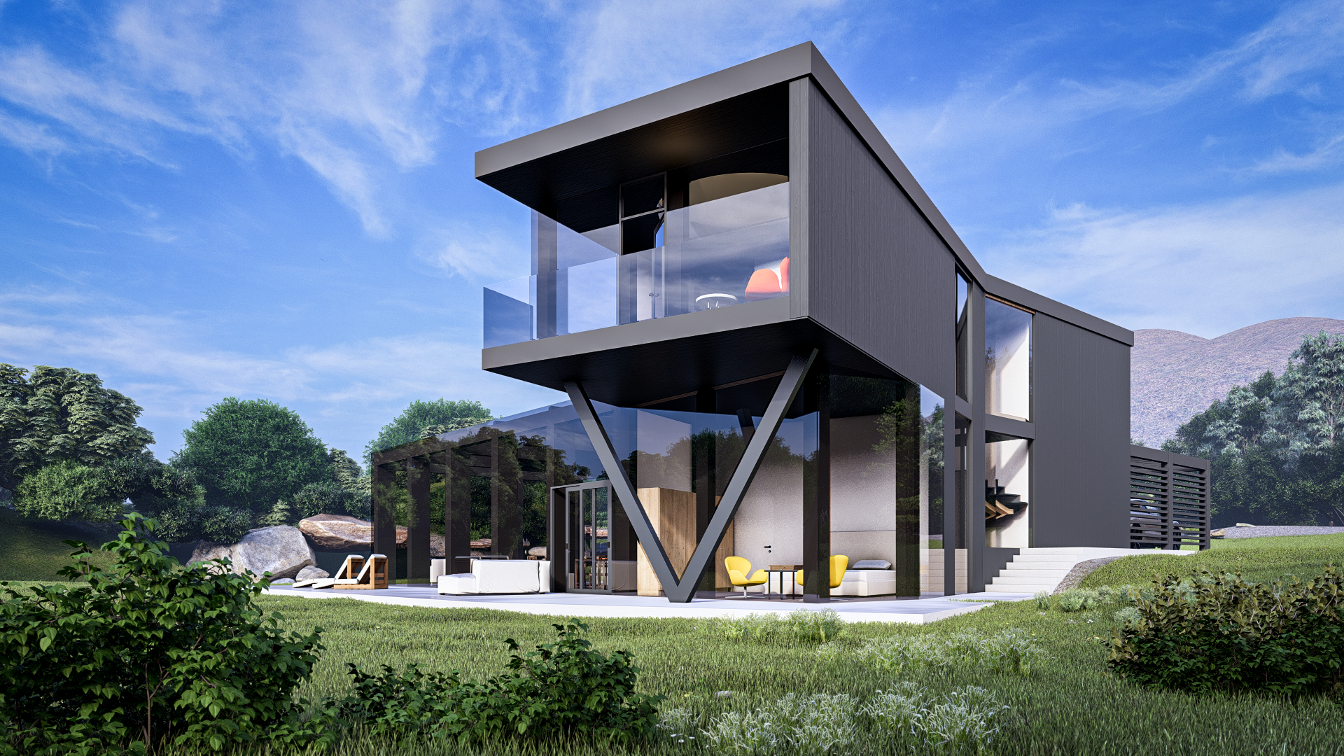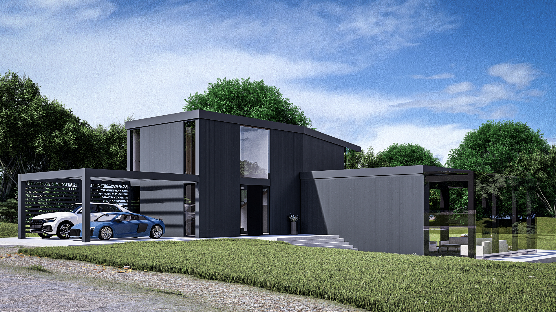 Дом в стиле хай-тек по проекту YARD по технологии стоечно-балочной системы